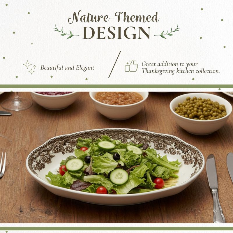 Spode Woodland Turkey Pickle Dish – 8.5 Inch Porcelain Serving Dish – Microwave, Oven, Freezer & Dishwasher Safe, Rustic Thanksgiving Serveware