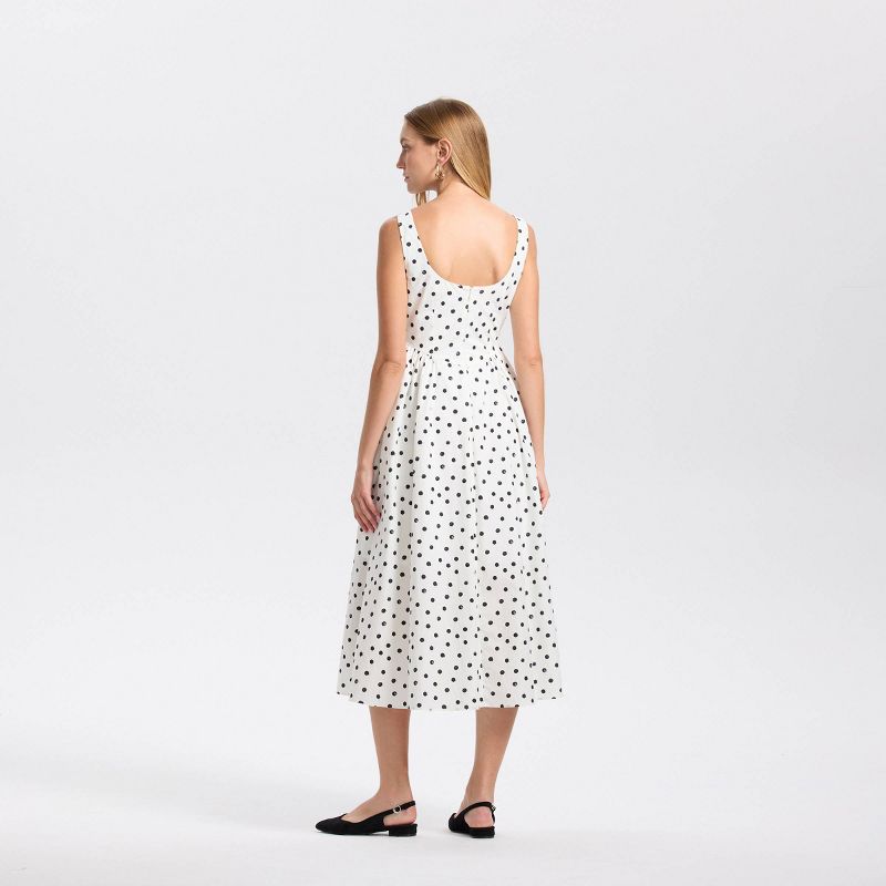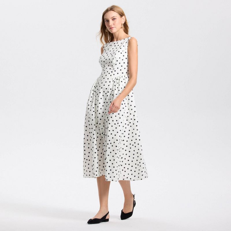 Women's Sleeveless Cap Sleeve Gathered Waist Midi A-Line Dress - A New Day™ Cream Dots M