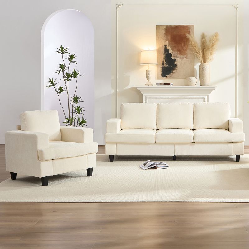 Mjkone 82"Chenille 3-Seat Straight Sectional Sofa with 56''Armchair,2 Piece Living Room Sectional Sofa Furniture Sets-Beige