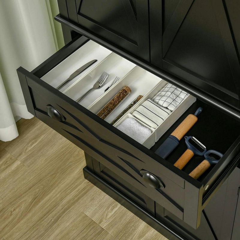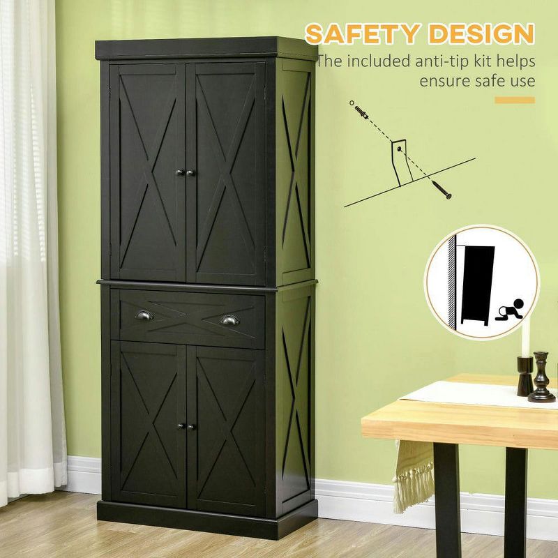 Resenkos 72" Kitchen Pantry Storage Cabinet, Traditional Freestanding Cupboard with 4 Doors and 2 Adjustable Shelves, Large Central Drawer, X-Frame,