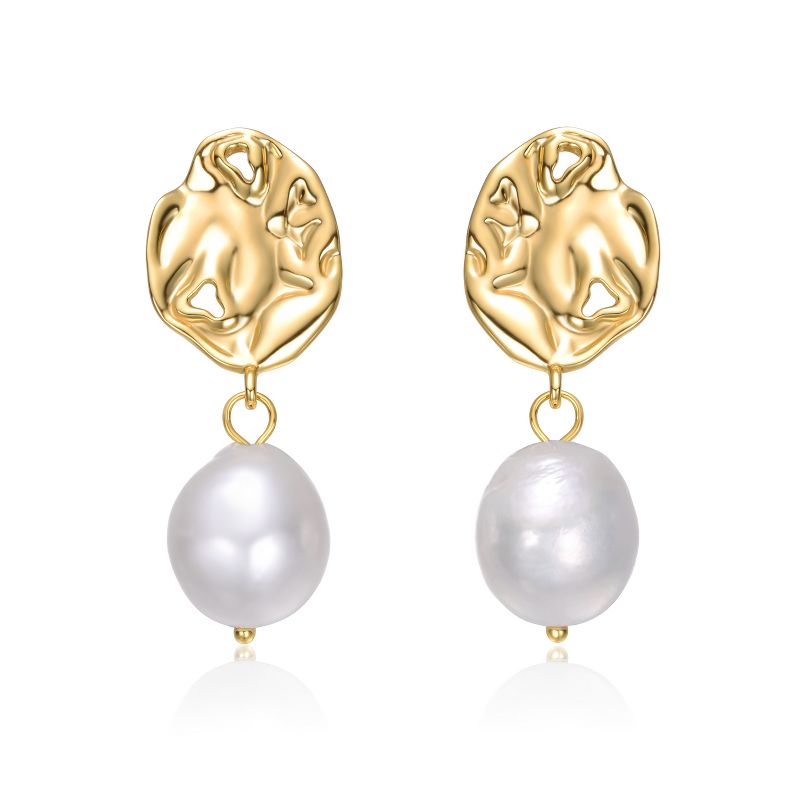 Guili Sophisticated Sterling Silver 14K Gold-Plated White Freshwater Pearl Crinkled Drop Earrings – Elegant Design with a Modern Touch