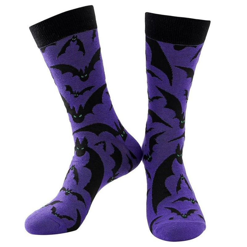 Bat Pattern Purple Socks from the Sock Panda - Great for Halloween (Men's Sizes, Adult Large)