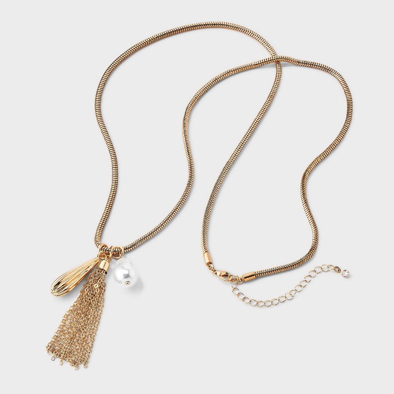 Tassel and Pearl Drop Pendant Necklace - A New Day™ Gold
