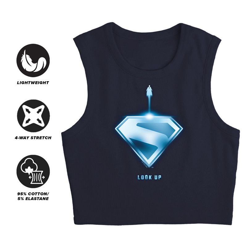 Women's Superman 2025 Look Up Shield Sleeveless Crop Top Tank, Navy, Large