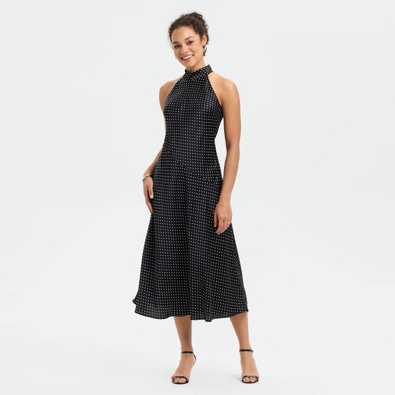 Women's Midi A-Line Dress - A New Day™ Black Dots L