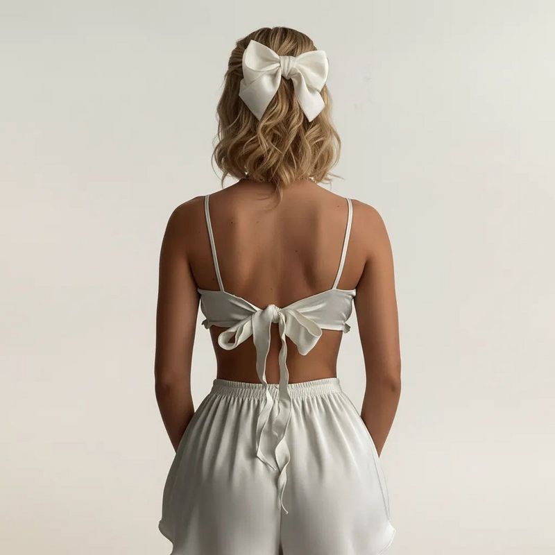 Anna-Kaci Womens Two Piece Cami Top and Elastic Waist Shorts Lounge Set - White