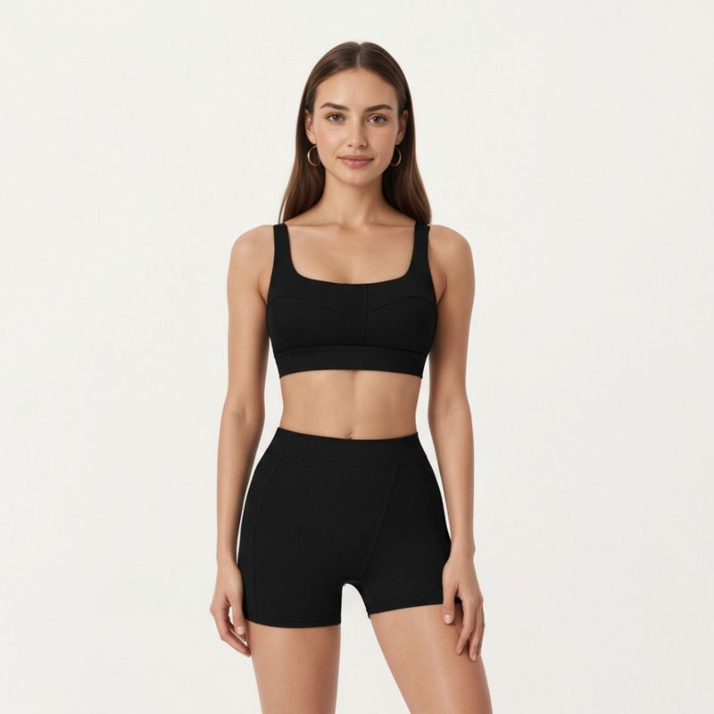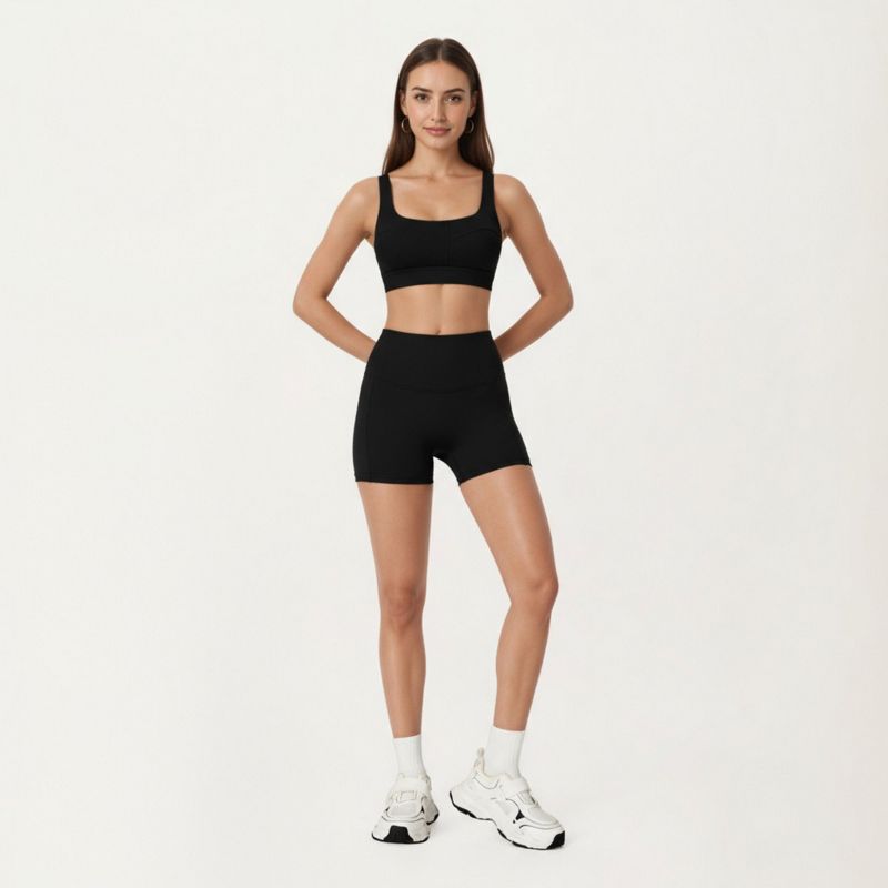 Anna-Kaci Active Women's High Waist Seam Detailed Active Shorts with Supportive Stretch Fabric and Flattering Fit - Large, Black