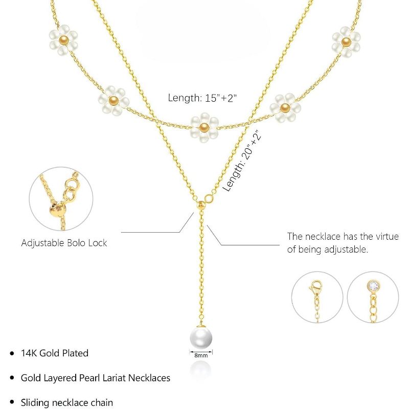 14K Gold-Plated Pearl Necklace Set: Dainty Layered Daisy Choker, Trendy Jewelry Gift for Women