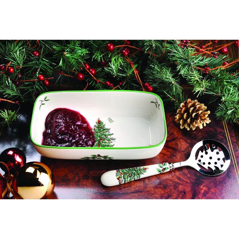 Portmeirion Botanic Garden Cranberry Dish with Slotted Spoon, 2-Piece Set, 8"x 4.25" Sauce Dish with 4.25" Serving Spoon, Rhododendron Flower Motif