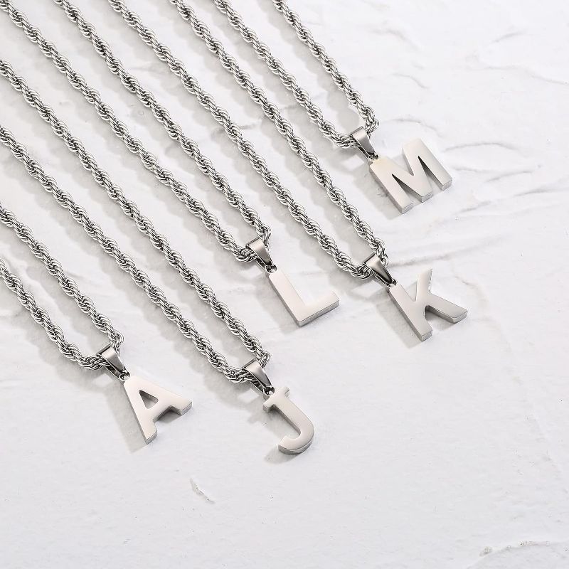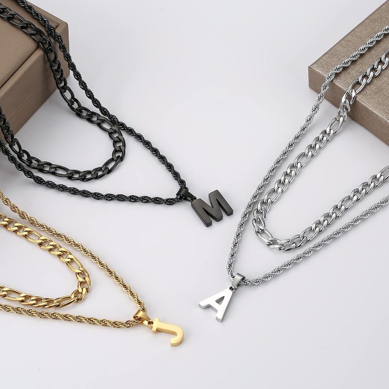 Men's Initial Necklace – Layered Letter Pendant with Figaro Chain (Graduation/Birthday Gift for Him)