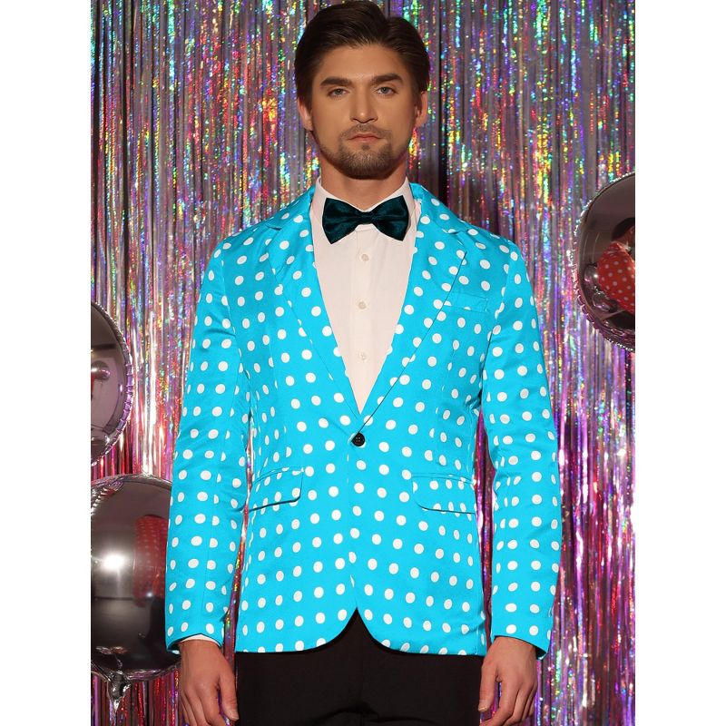 Lars Amadeus Men's Classic Slim Fit One Button Polka Dots Blazers Medium Blue