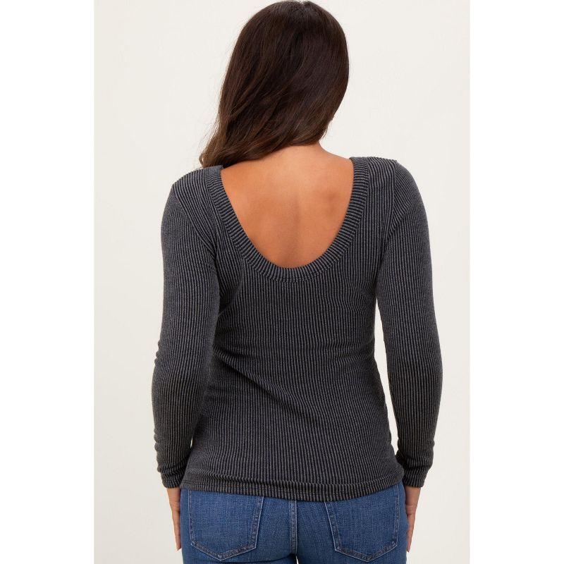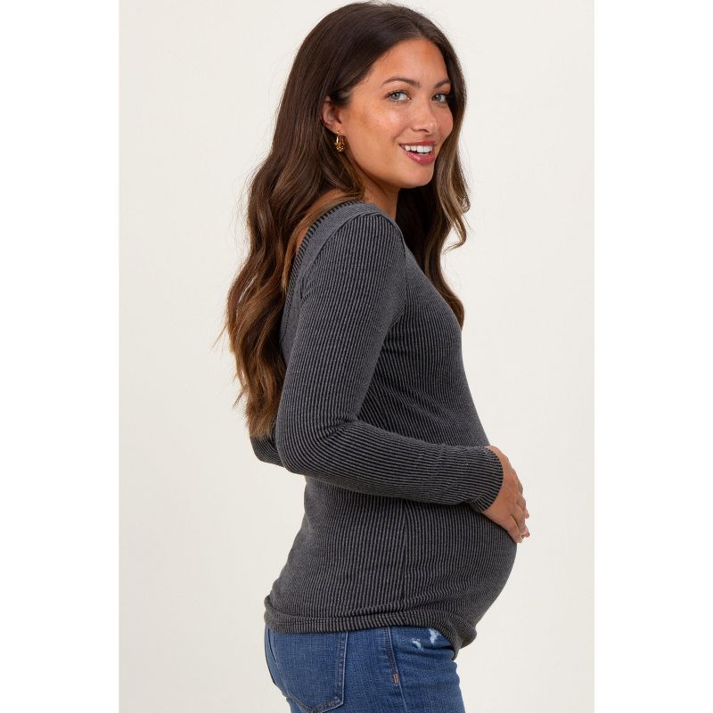 Pinkblush Charcoal Ribbed Scoop Neck Long Sleeve Maternity Top Large