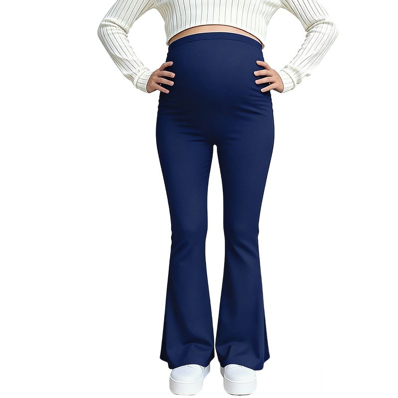 Maternity Womens High Waisted Flared Leg Pants Stretchy Waistband Soft Pants Navy Blue S