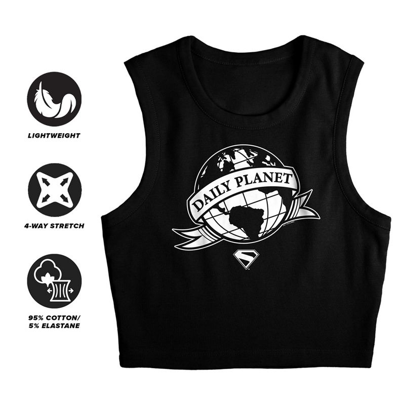 Women's Superman 2025 Daily Planet Scroll Sleeveless Crop Top Tank, Black, X Large