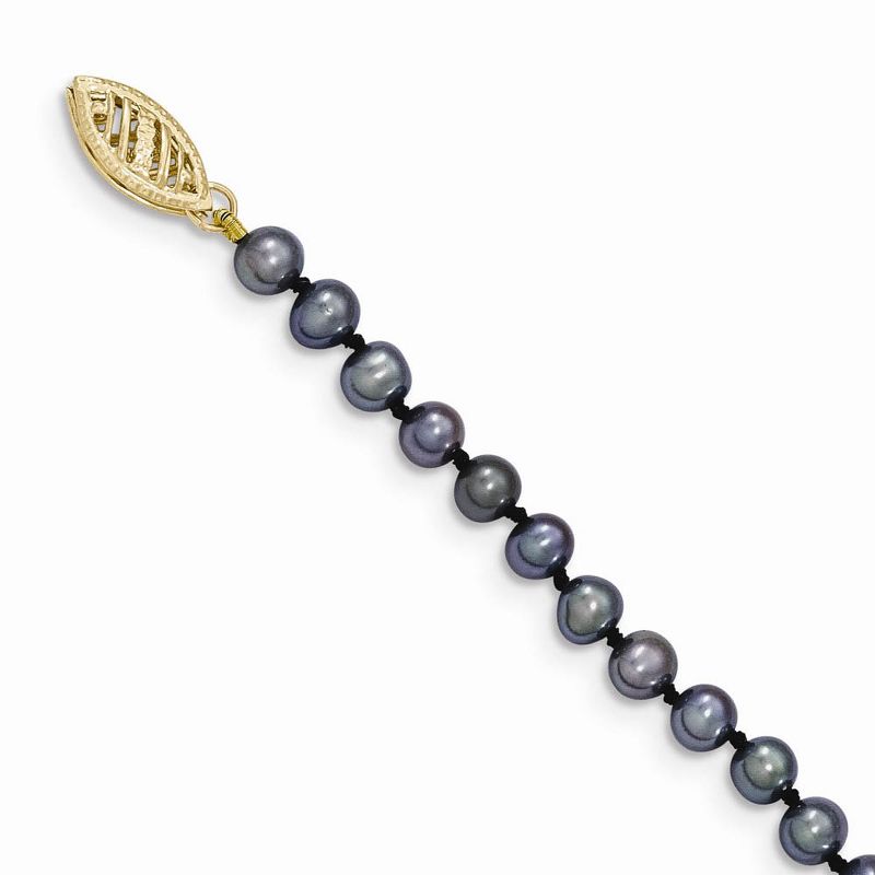 Black Bow Jewelry 4-5mm, Black FW Cultured Pearl & 14k Yellow Gold Necklace, 16 Inch