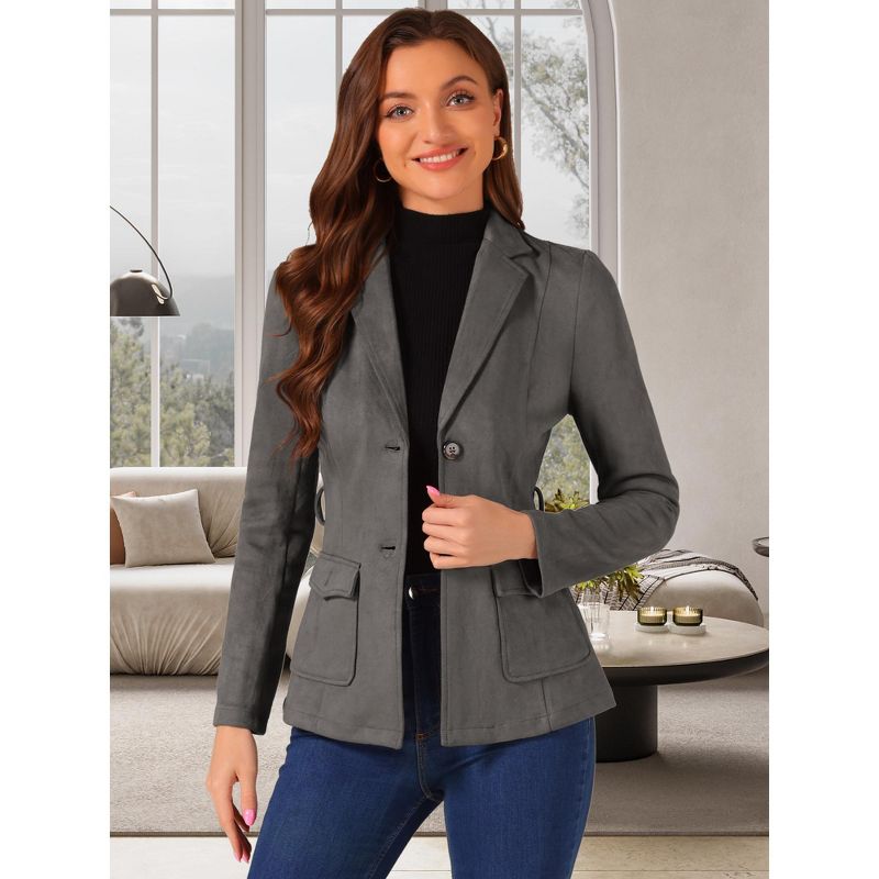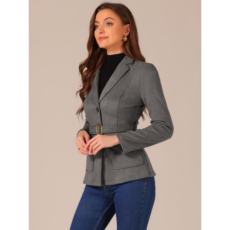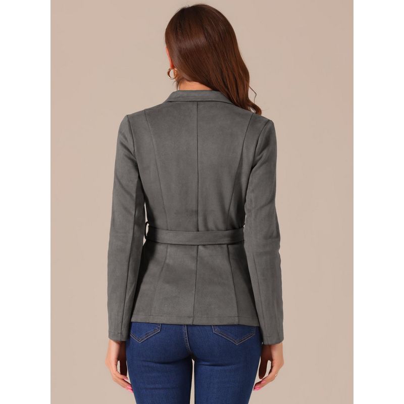 INSPIRE CHIC Women's Faux Suede Belted Lapel Single Breasted Work Outwear Blazer Large Dark Grey