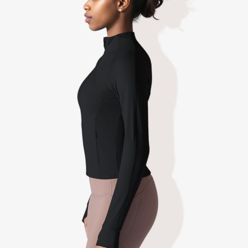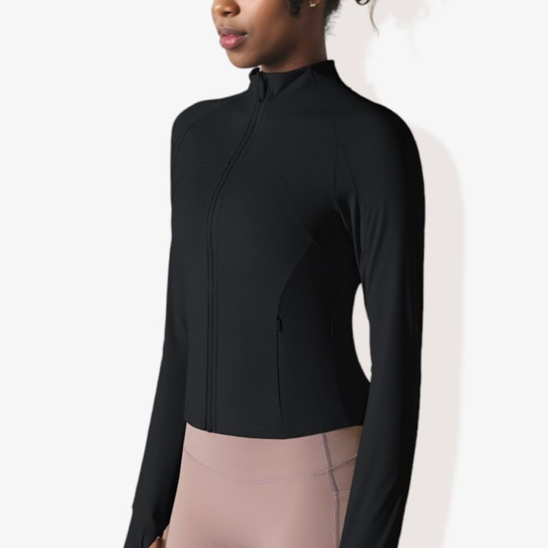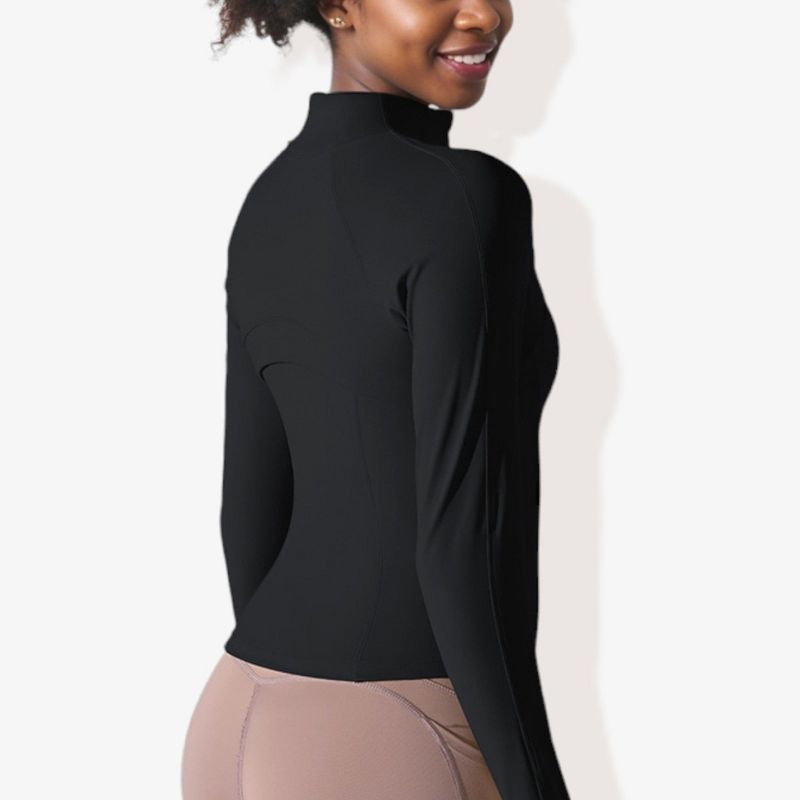 Anna-Kaci Active Women's Stretchy Long Sleeve High Neck Zip Pocket Sports Jacket-X Large, Black