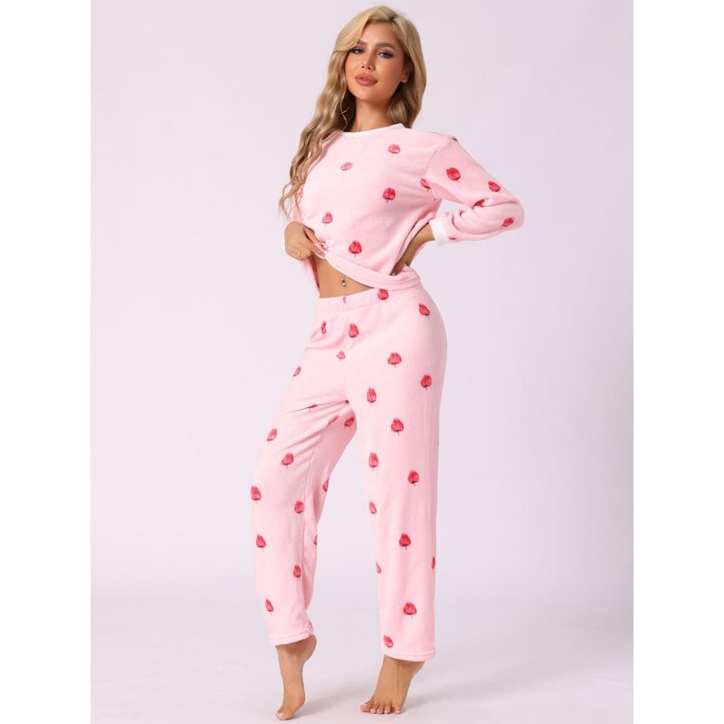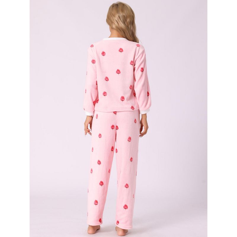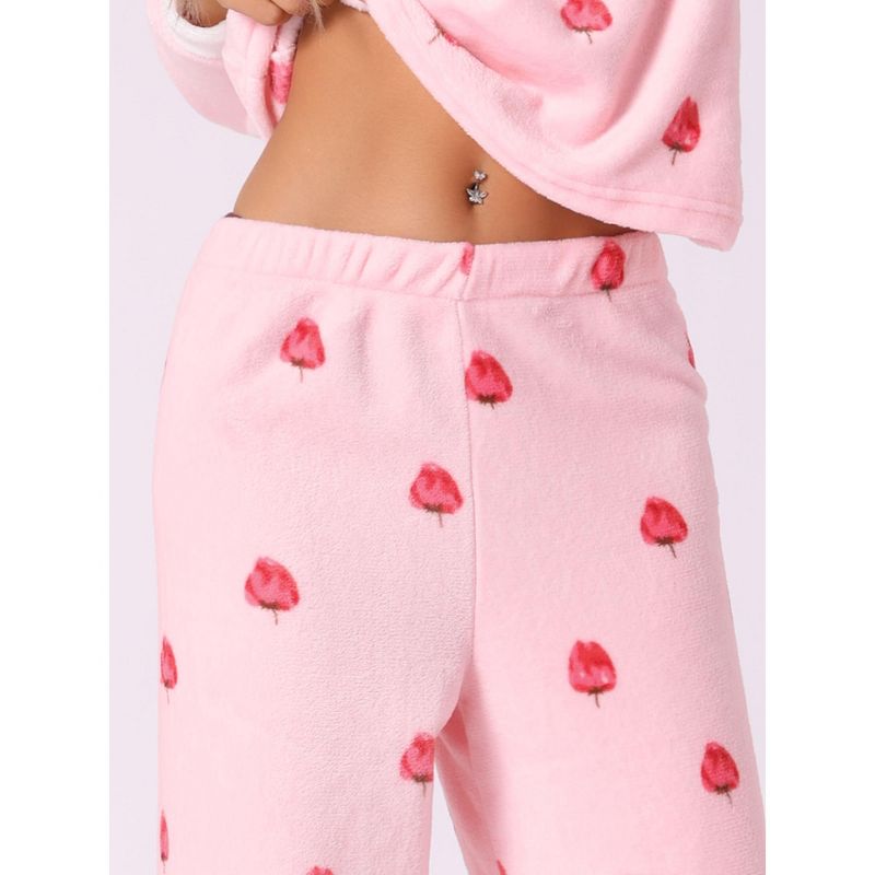 cheibear Women's Flannel Winter Cute Printed Long Sleeve Pajama Sets Strawberry Pink X-Large