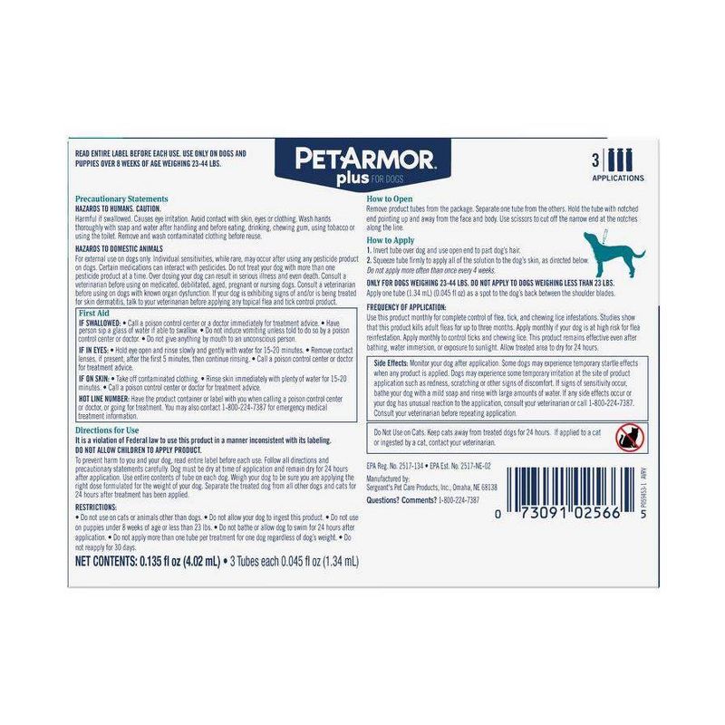 PetArmor Plus Flea and Tick Topical Treatment for Dogs - 23-44lbs - 3 Month Supply