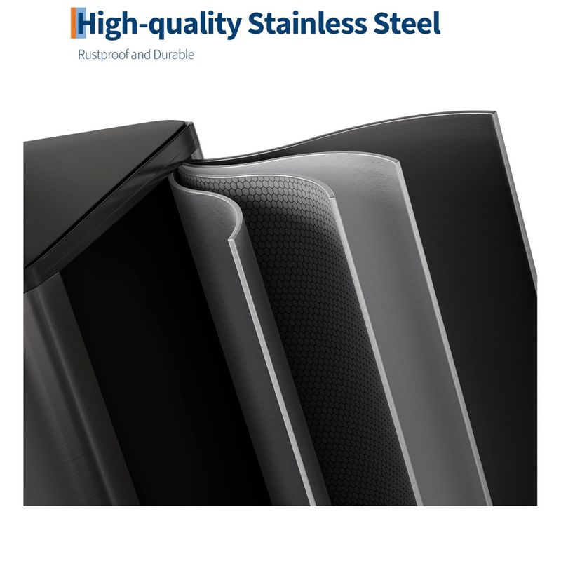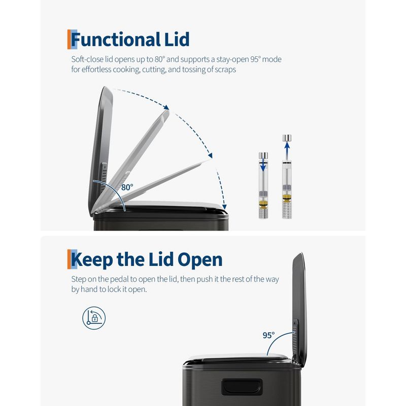 Stainless Steel Double Trash Can with Lid for Kitchen, Step-on Metal Garbage Cans with 2 Compartments, P Inner Buckets, Liner Rim