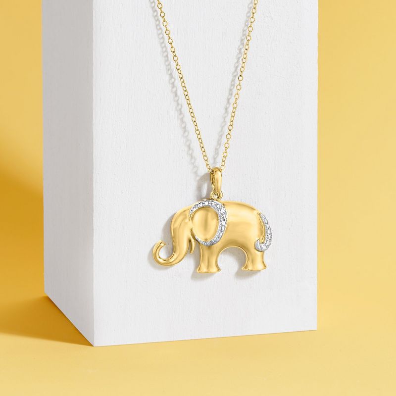 Ross-Simons 18kt Gold Over Sterling Silver Elephant Pendant Necklace With Diamond Accent Size 18