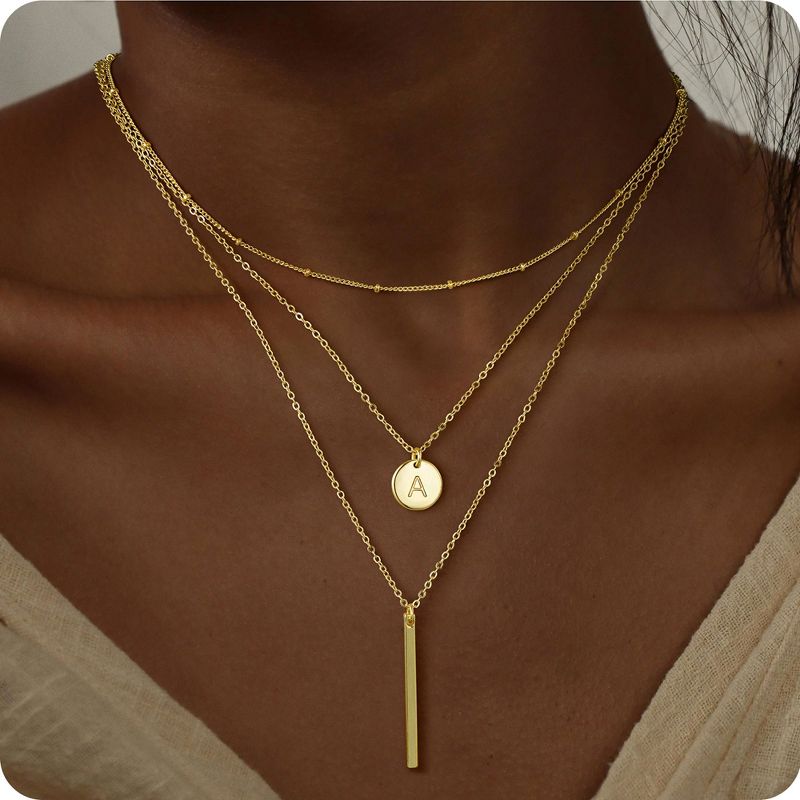 Turandoss 3PCS Gold Initial Layered Necklaces for Women, Stacking Pendant Y Necklace, Gold Jewelry, Valentine's Day Gifts, 15/18/22+2.5Inches Gold M