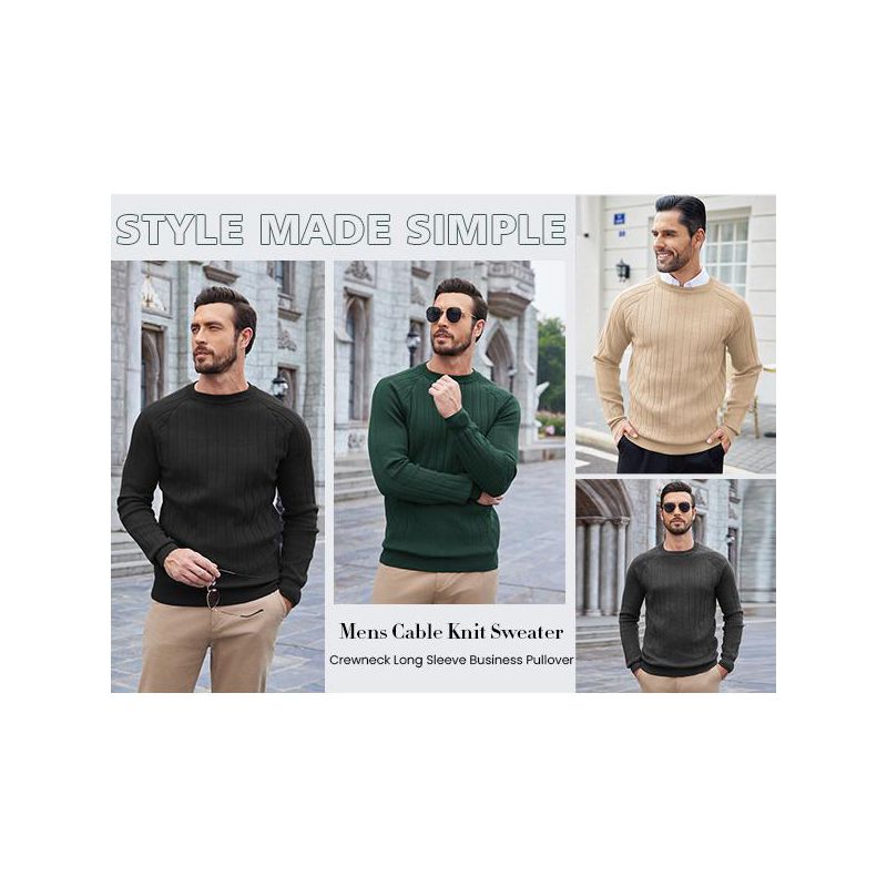 COOFANDY Mens Crewneck Pullover Sweaters Business Casual Long Sleeve Slim Fit Sweater Chunky Cable Knit Sweater Blue M