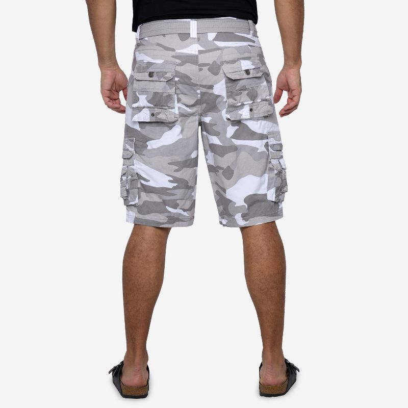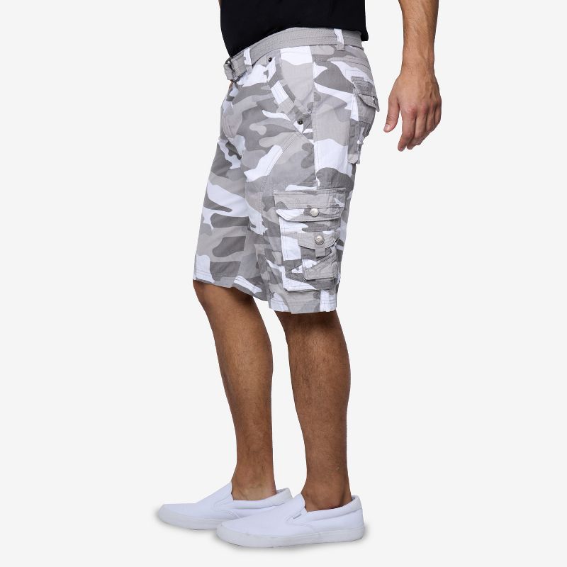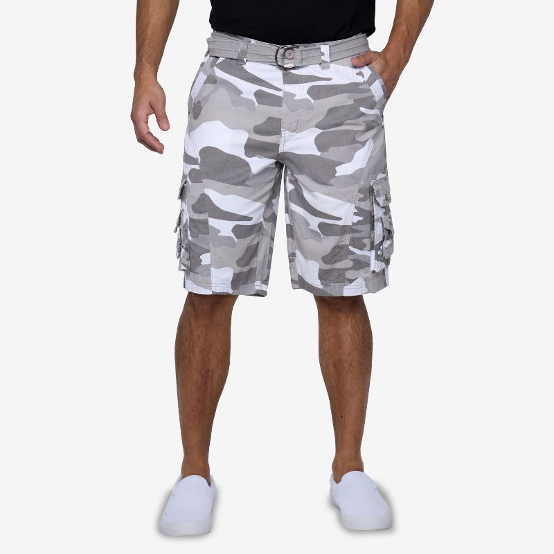 X RAY Men's Belted 12.5" Inseam Knee Length Cargo Shorts ,Camo Shorts(plus size shorts in available) in WHITE CAMO Size 38