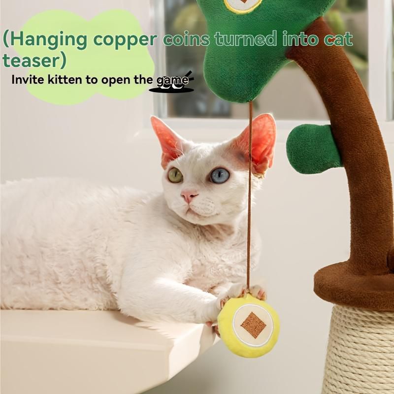 Vertical Money Tree Cat Scratching Pole, Sisal Wear-Resistant Cat Scratching Column, Interactive Ball Track Spring Ball Cat Toy