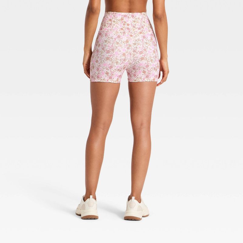 Women's Cinched Waistband Bike Shorts 3" - JoyLab™ Pink Floral M