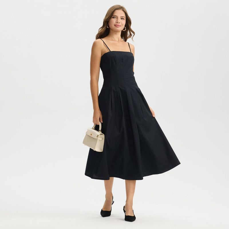 Women's Sleeveless Paneled Midi A-Line Dress - A New Day™ Black M