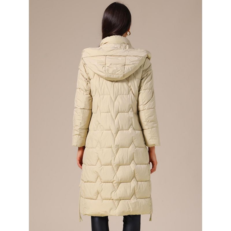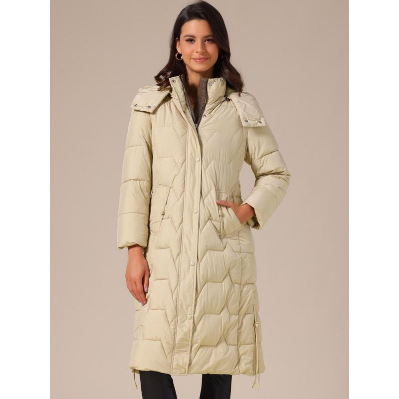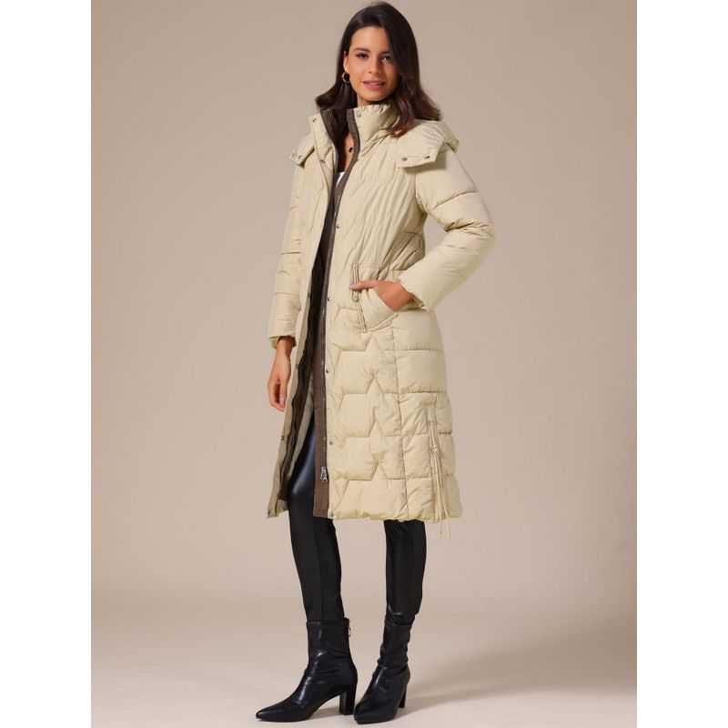 INSPIRE CHIC Women's Winter Hooded Zip Up Down Stand Collar Long Puffer Coat Large Khaki