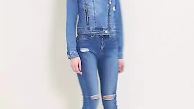 Allegra K Women's Notched Collar Zip Closure Biker Motocycle Denim Jacket Dark Blue X-Small