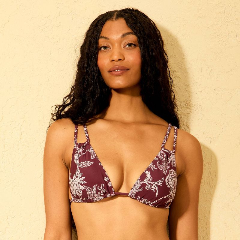 Women's Paisley Print Braided Straps Triangle Bikini Top - Shade & Shore™ Burgundy L