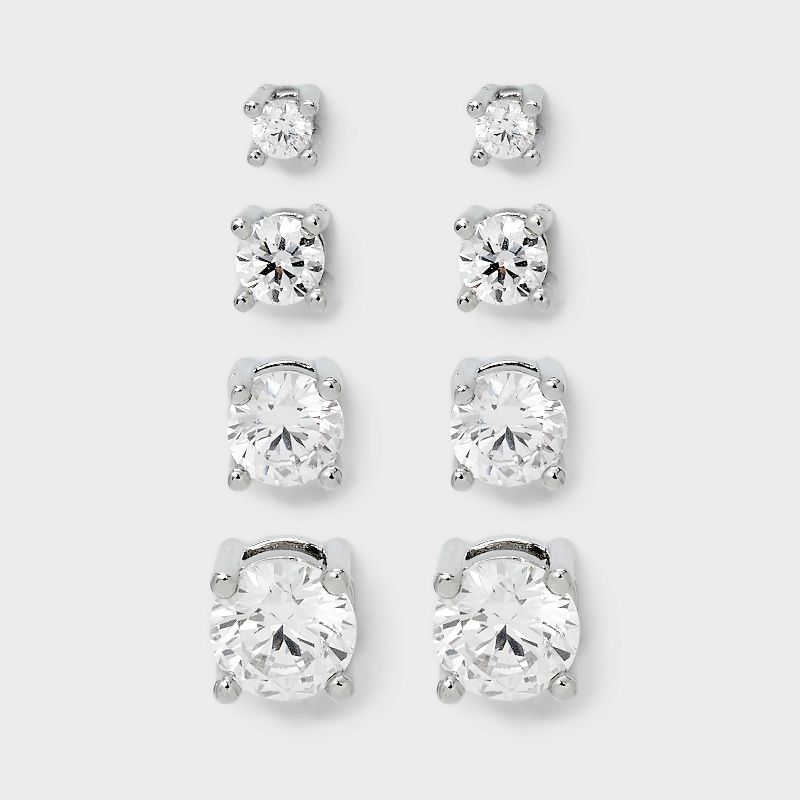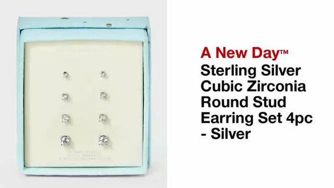 Sterling Silver Cubic Zirconia Round Stud Earring Set 4pc - A New Day™ Silver