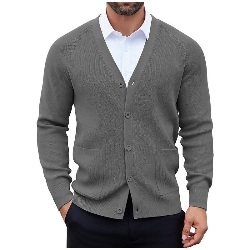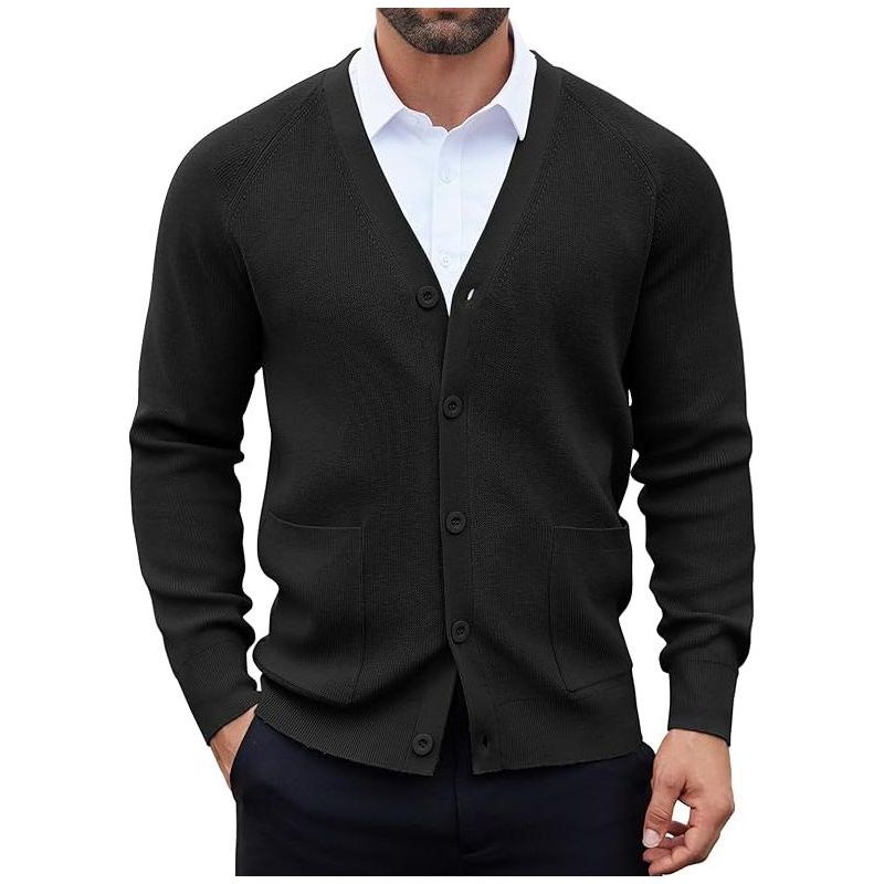 COOFANDY Men's Cardigan Sweaters with Button Lightweight Casual V Neck Long Sleeve Pockets Knitted Sweater Navy Blue S