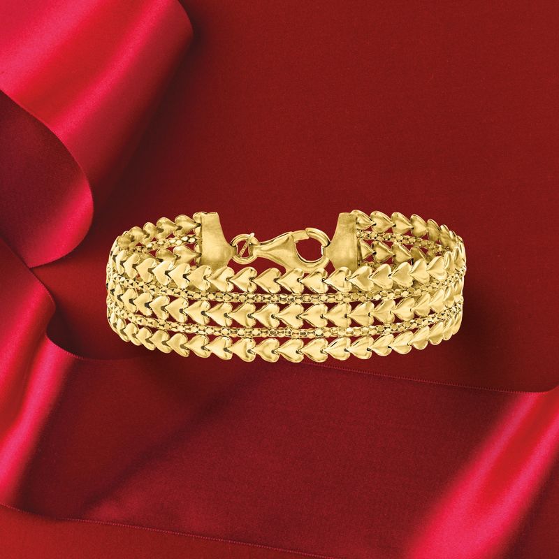 Ross-Simons Italian 18kt Gold Over Sterling Multi-Row Heart Bracelet Size 7