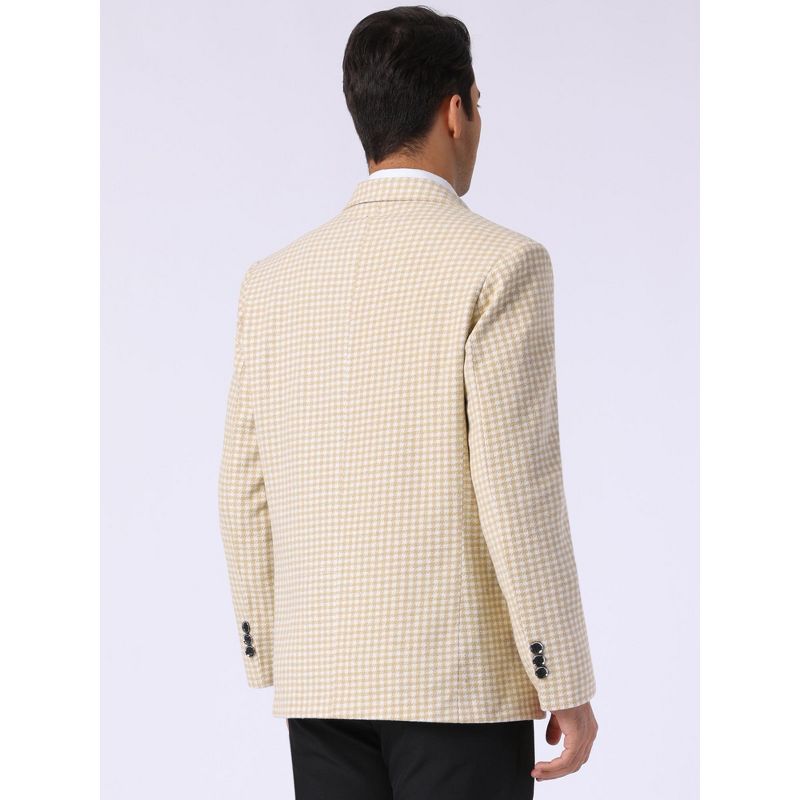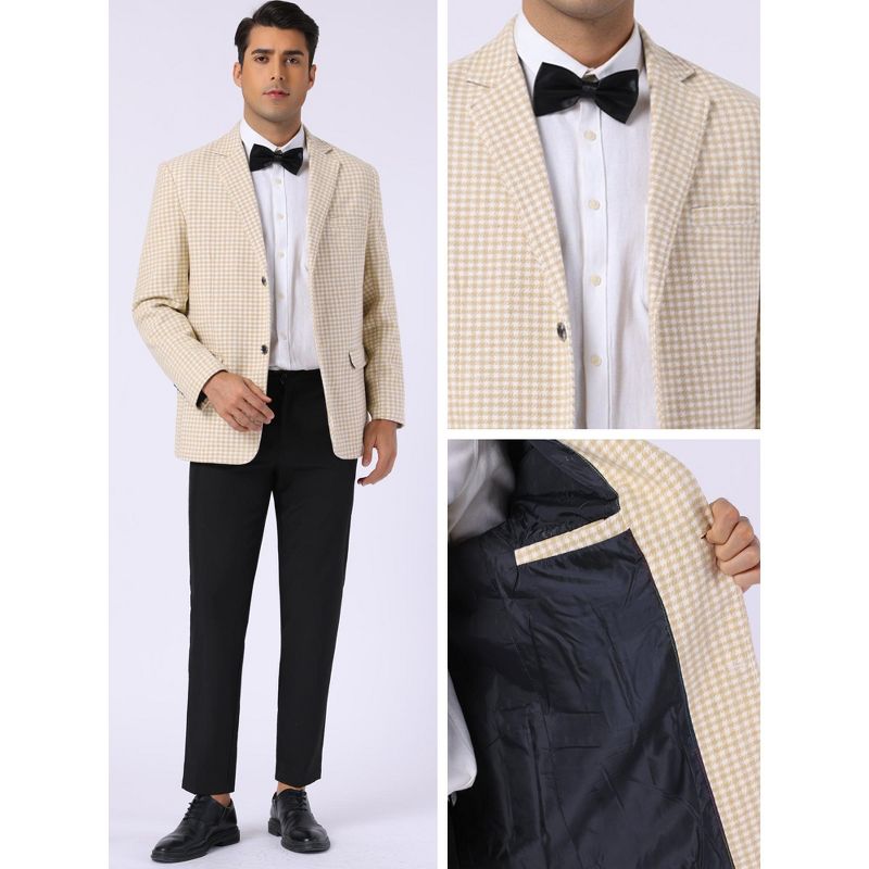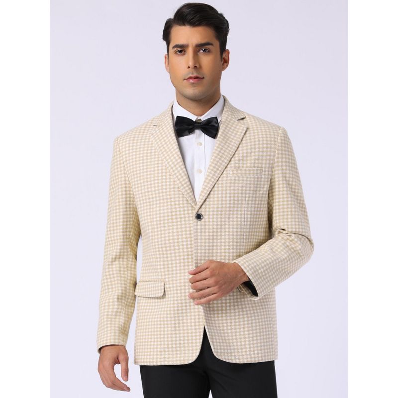 Lars Amadeus Men's Classic Fit Business Two Button Houndstooth Printed Blazer Beige Medium