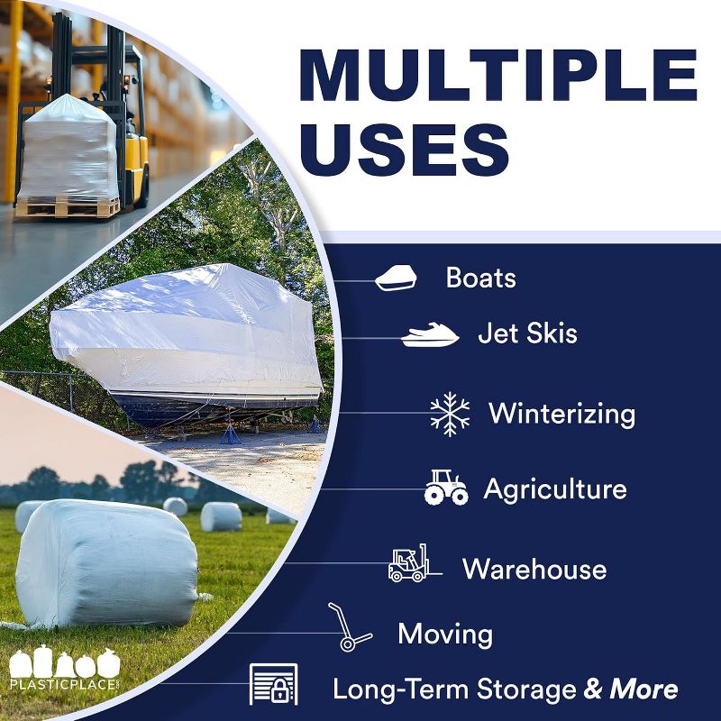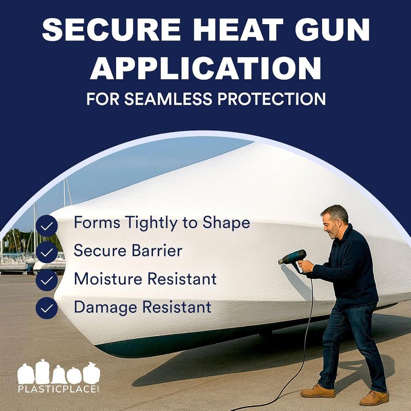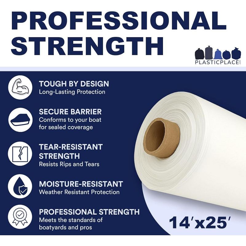Plasticplace Premium 14’ x 25’ Boat Shrink Wrap Film, Heavy Duty, White
