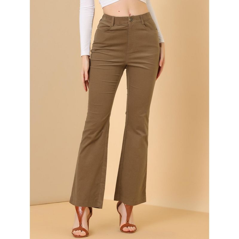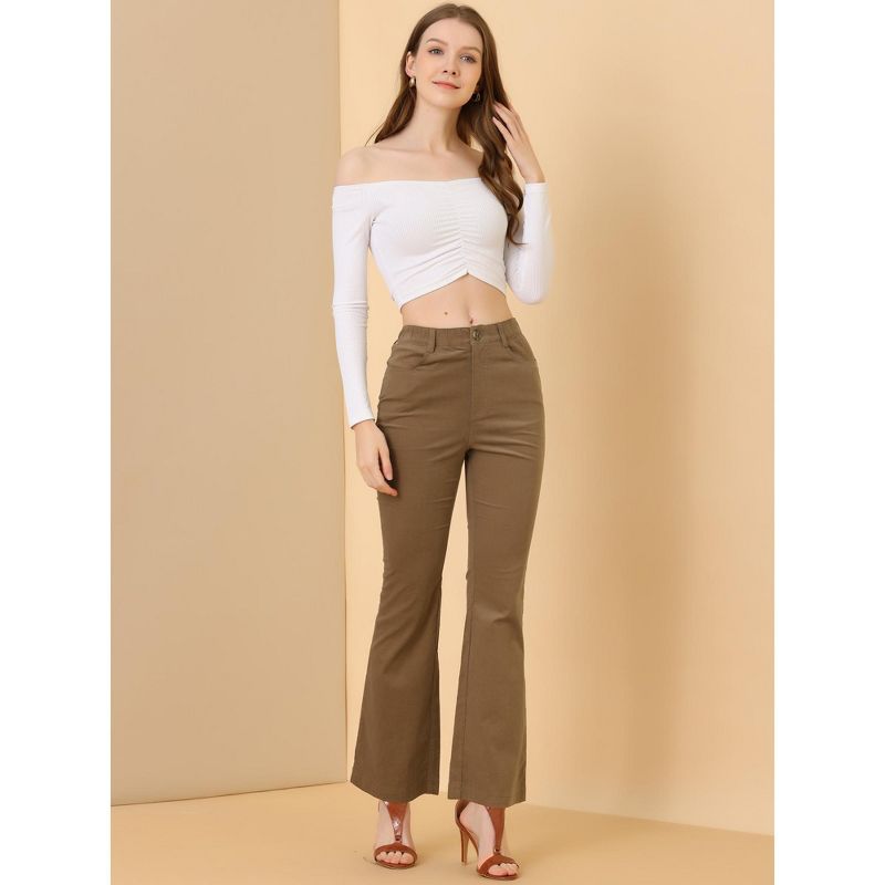 Allegra K Women's Vintage High Waist Long Bell Bottom Corduroy Pants Brown Medium