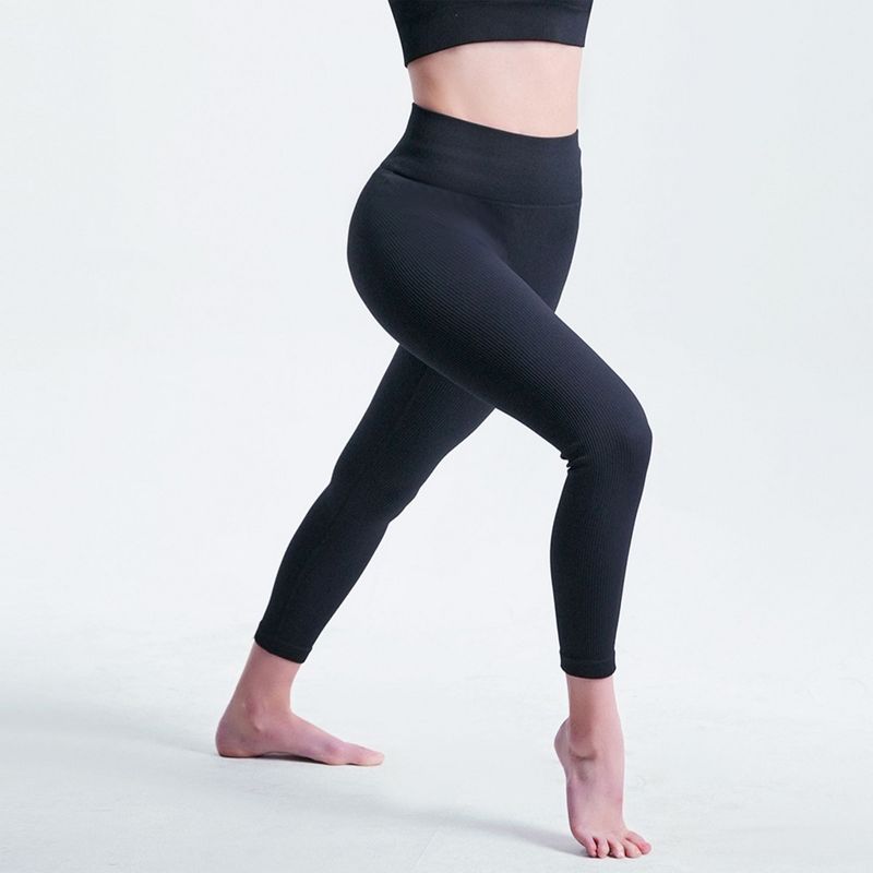 NAYSAYE XL Women Yoga Pant Leggings Ribbed Solid High-Waisted Tummy Control Seamless Soft Gym Outfit Yoga Pants for Women Leg Training, Black