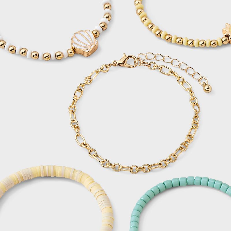 Girls' 5pk Bracelet Set with Sun and Palm Tree Charms - Cat & Jack™
