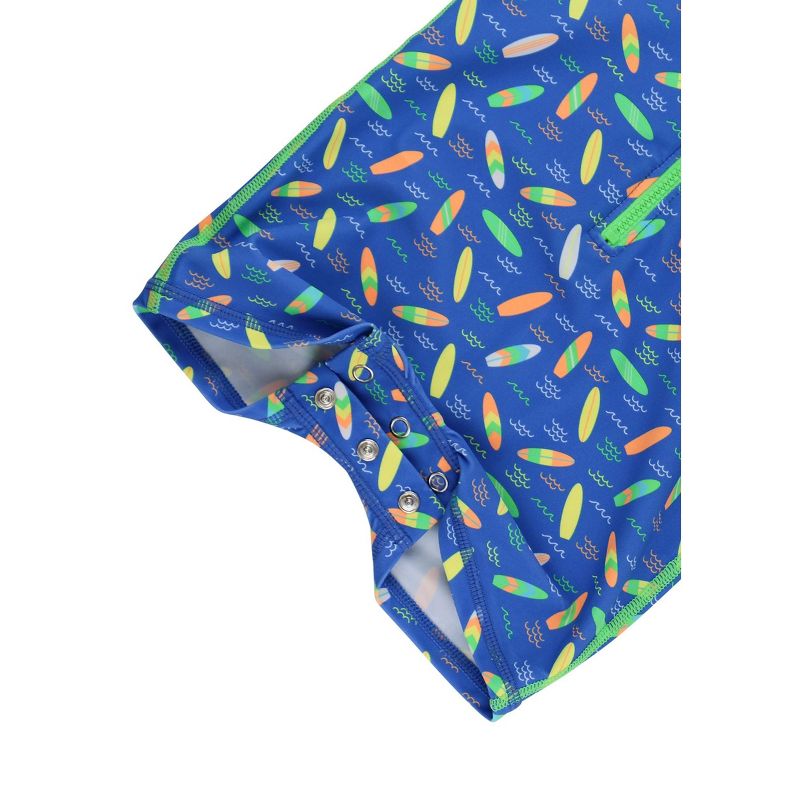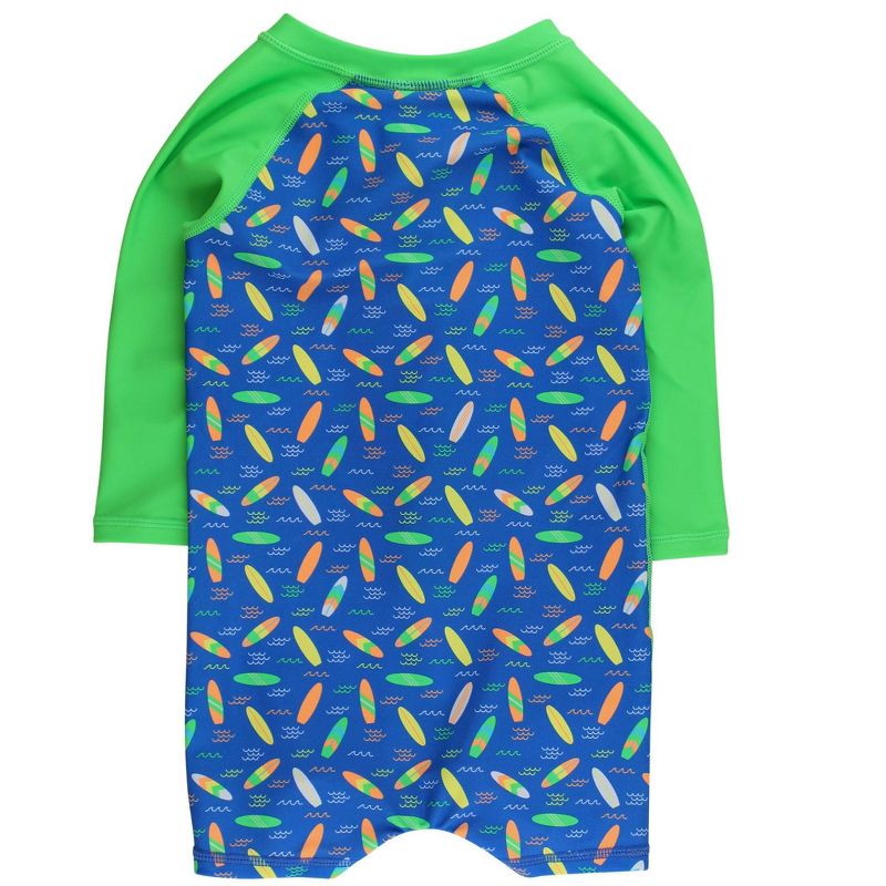 RuggedButts Baby/Toddler Boys UPF50+ Long Sleeve One Piece Rash Guard - Neon Surfs Up, 6-12m