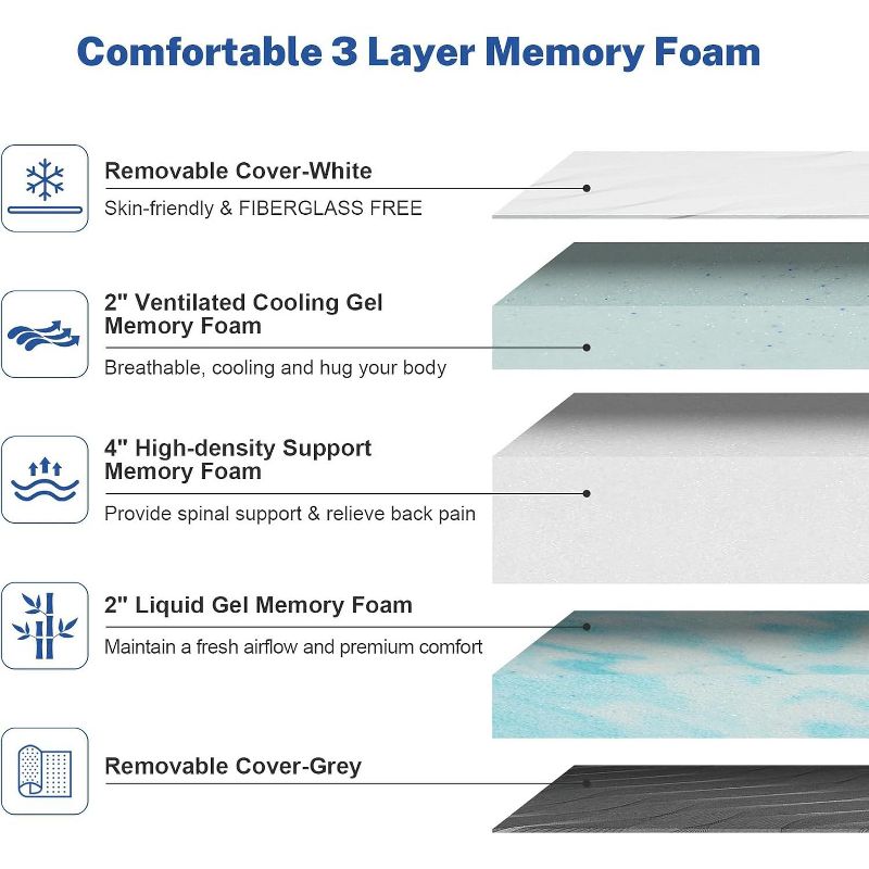 Dyonery Extra Firm Full Mattress, 8 Inch Medium - Memory Foam Mattress in a Box, Dual Sides Flippable Mattress for Back Pain, White