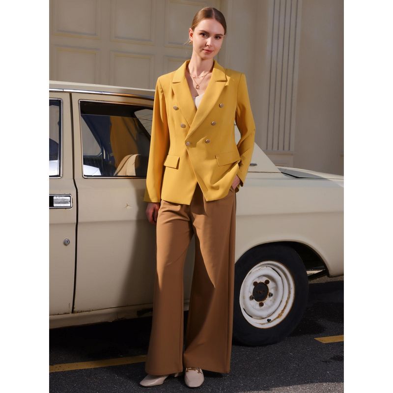INSPIRE CHIC Women's Long Sleeve Double Breasted Notch Lapel Blazer Yellow Large