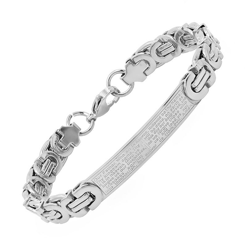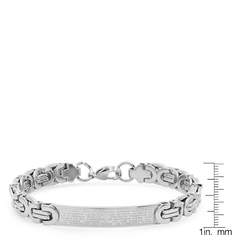 Steeltime Men's stainless steel byzantine link Our Father english prayer id bracelet
