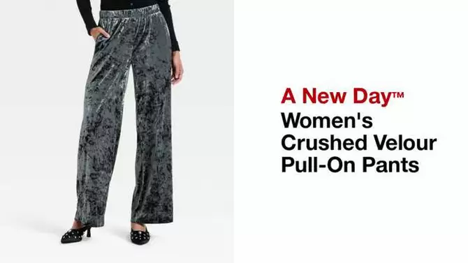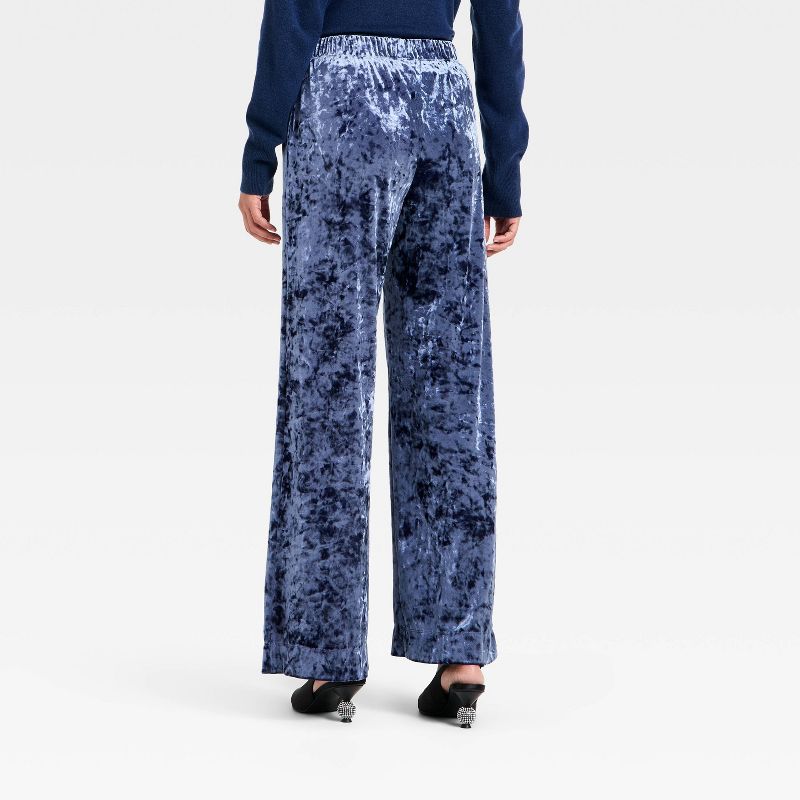 Women's Crushed Velour Pull-On Pants - A New Day™ Navy Blue S