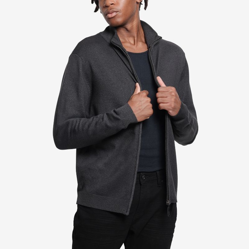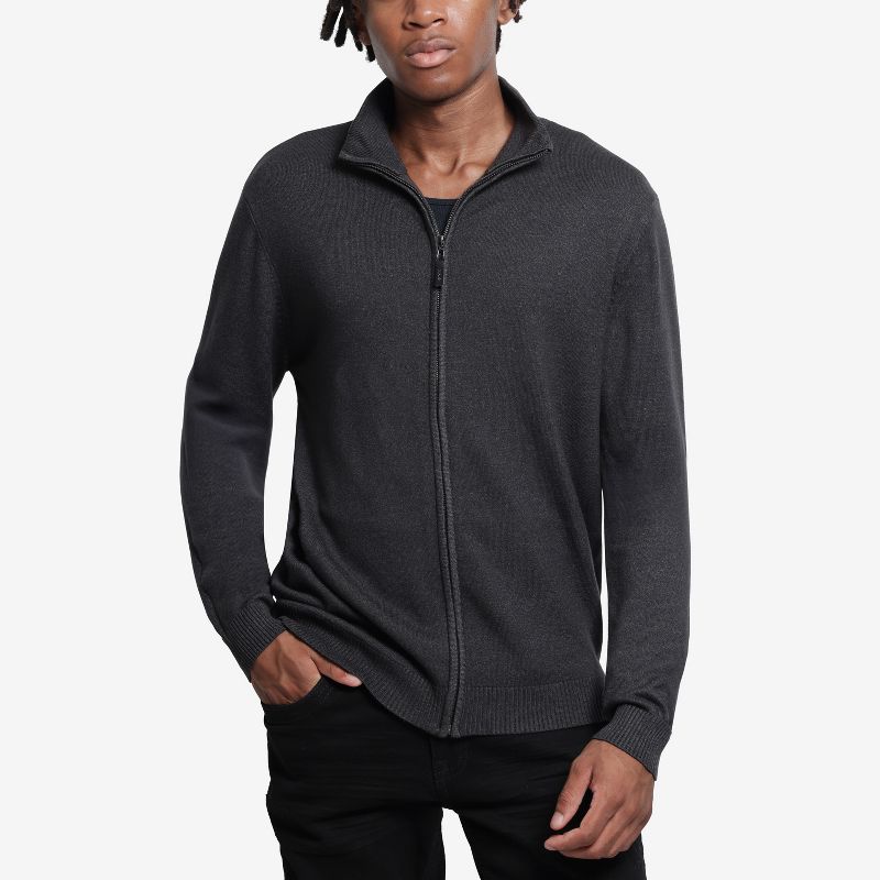 X RAY Men's Full Zip Mock Neck Sweater in HEATHER CHARCOAL Size L