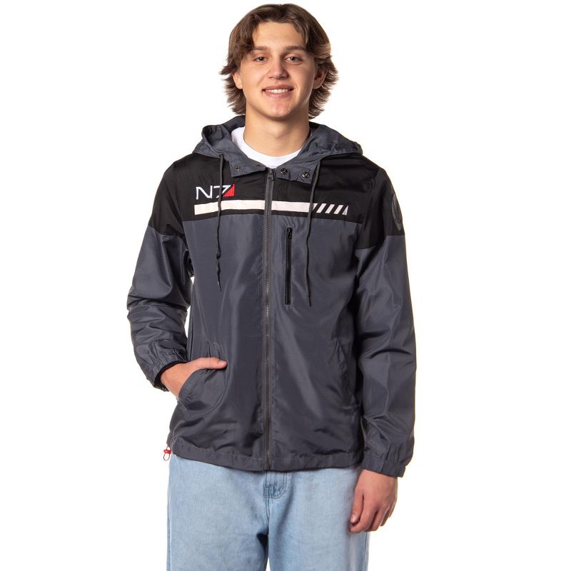 Mass Effect Men's N7 Logo Special Tactics Windbreaker Jacket With Hood (L)