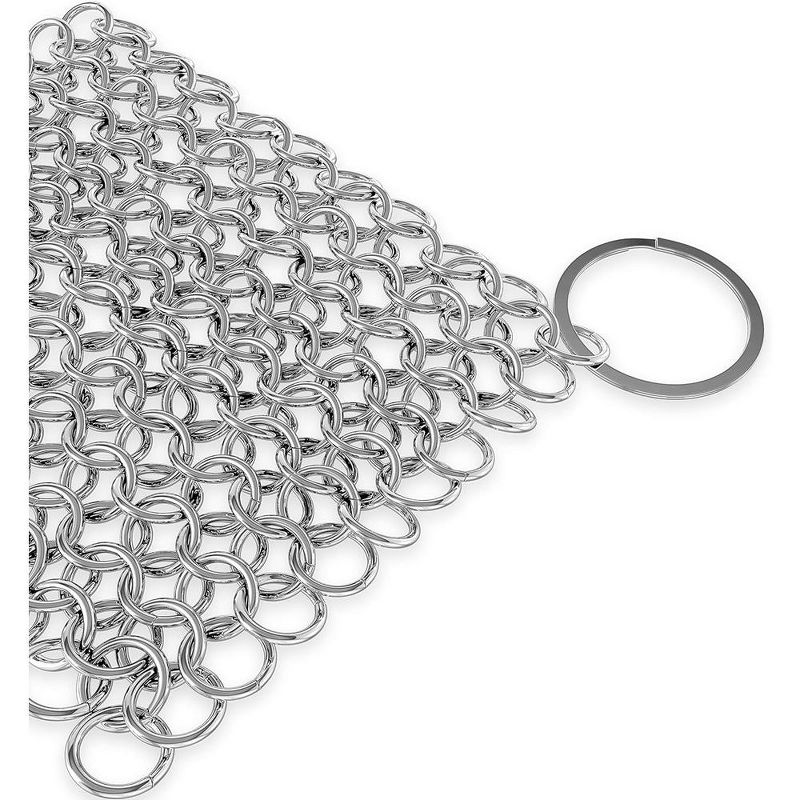 NutriChef Stainless Steel Cast Iron Cleaner - Durable Chainmail Pan-Pot Dutch Oven Cleaning Tool - Black